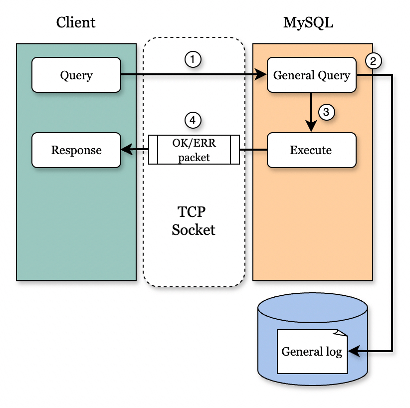 자매품으로 제너럴 로그는 MySQL 서버가 클라이언트의 쿼리 요청을 받고나서 파싱 전에 기록한다.